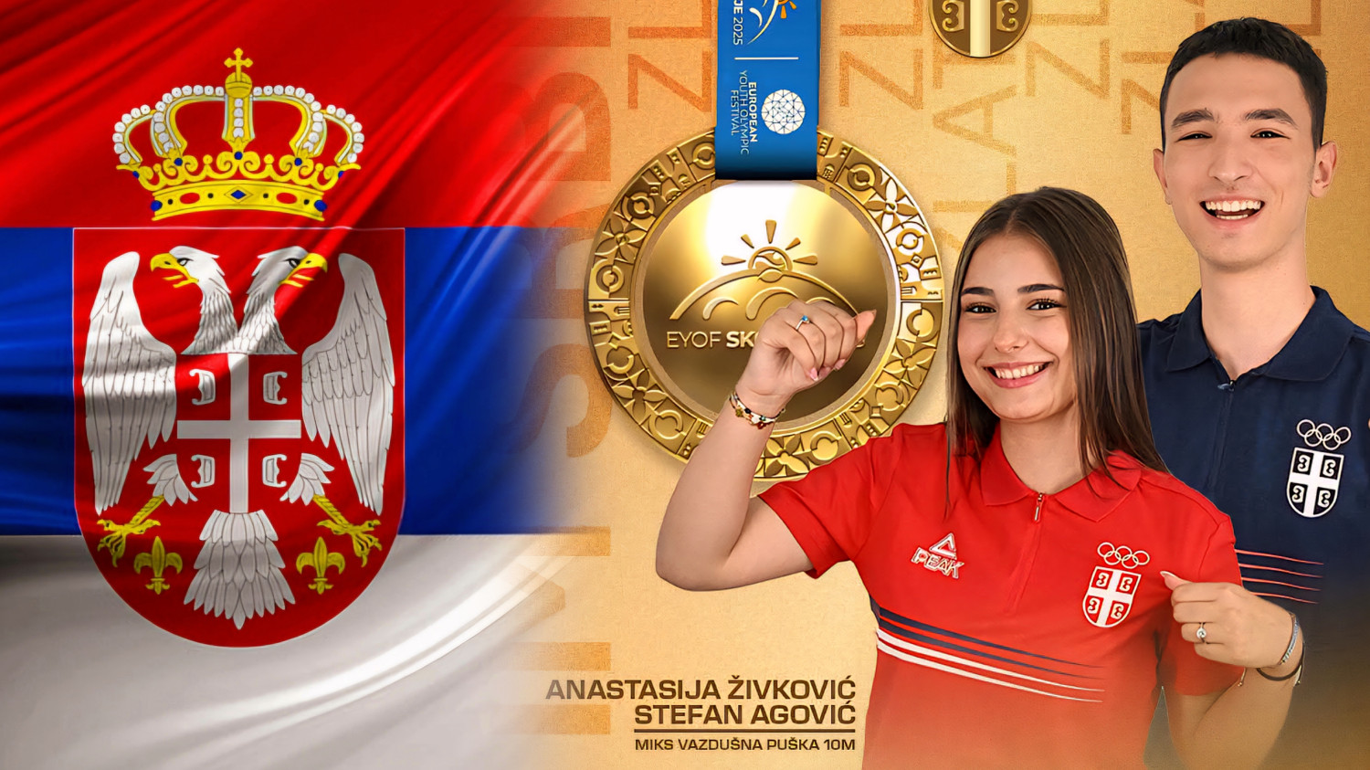 Više od 4.000 mladih sportista uzrasta od 14 do 18 godina iz 50 zemalja okupilo se na 18. letnjem Evropskom olimpijskom festivalu mladih (EYOF) u Skoplju, a Srbija već slavi prvu zlatnu medalju! Mladi strelci Anastasija Živković i Stefan Agović ostvarili su sjajan uspeh osvojivši najsjajnije odličje u disciplini miks vazdušna puška 10m.