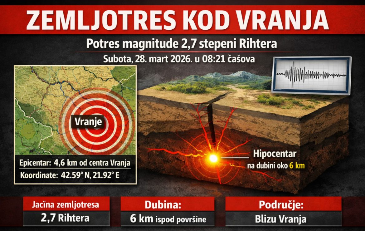 Republički seizmološki zavod Srbije objavio je da je jutros u 08:21 časova registrovan zemljotres jačine 2,7 jedinica Rihterove skale.