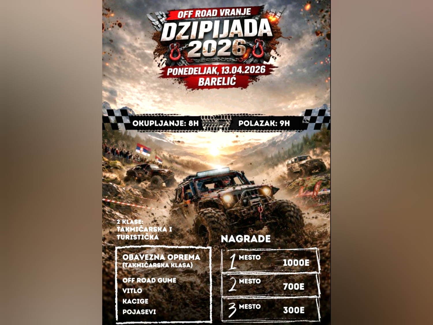 Planinski predeli Barelića u ponedeljak, 13. aprila 2025. godine, postaće poprište vrhunskog adrenalinskog događaja pod nazivom „Off road Vranje – Džipijada 2026“. Ova manifestacija, koja privlači veliki broj učesnika iz zemlje i regiona, obećava uzbudljivu borbu sa nepristupačnim terenima i testiranje granica izdržljivosti mašina i vozača.